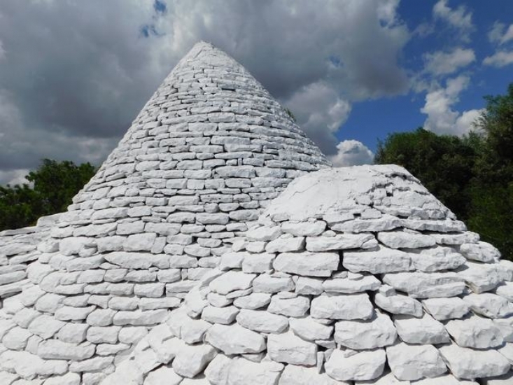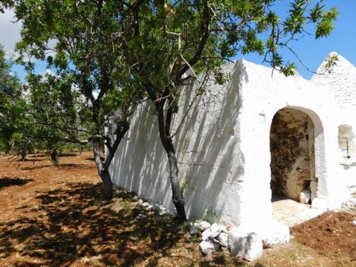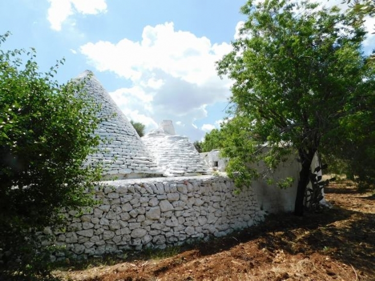 San Michele Salentino Trullo 4 coni con Lamia dalle volte a “botte” camino. Comunicante tra loro, mq.55, da ristrutturare. Ampio piazzale di pertinenza, cisterna. La struttura si può ancora ampliare di circa 70 mq. + 30% di verande. Terreno mq.10.000 uliveto, frutteto.