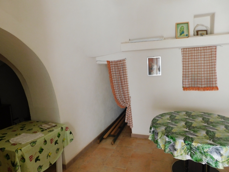 Trullo 5 coni con lamia in buono stato strutturale con elettricità e bagno, ampio spiazzo, pozzo artesiano, cisterna, forno a legna, e altra struttura con possibilità di ampliamento. Terreno mq.20.000 uliveto, possibilità di ampliamento e piscina secondo le norme previste.